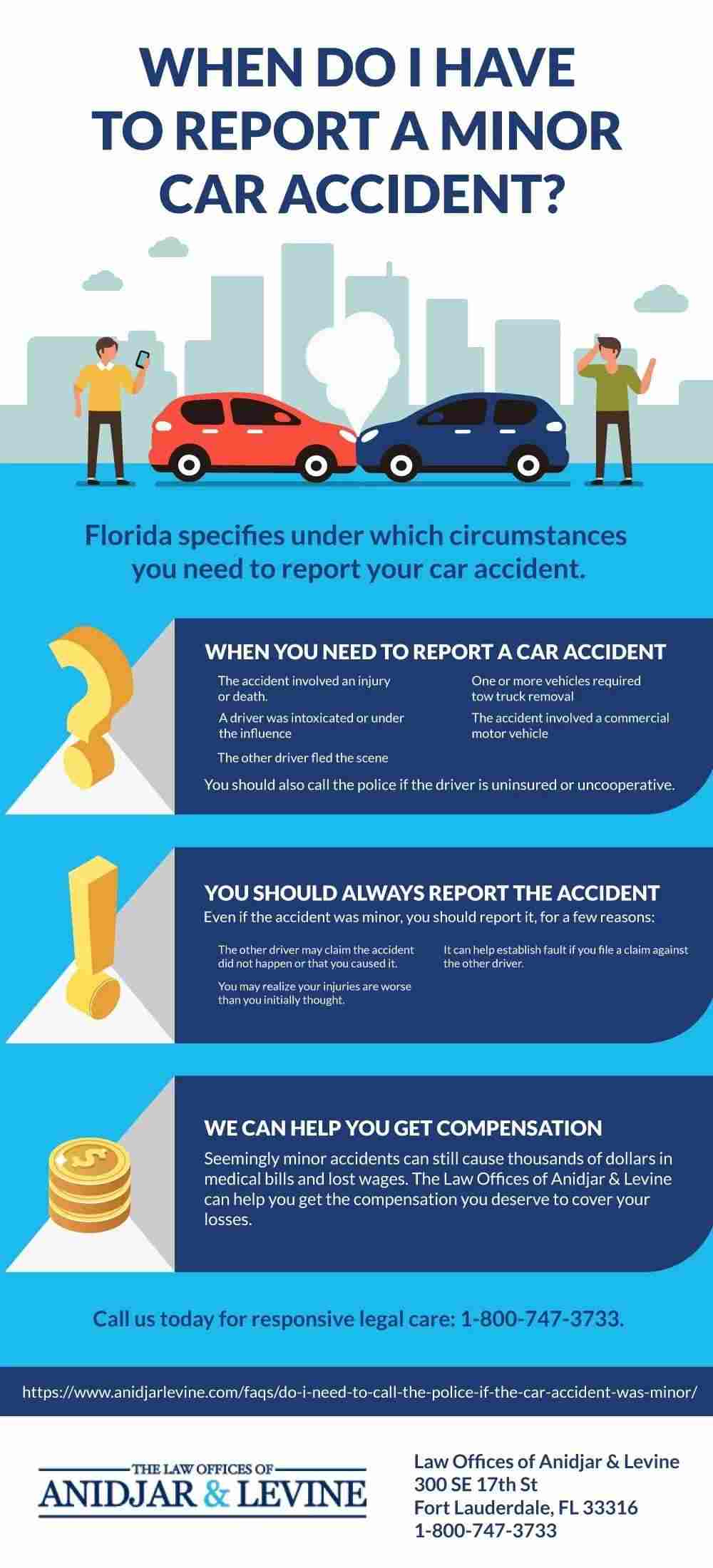 You should always report a Fort Lauderdale car accident, even a minor one. Remember, some car accident injuries, like whiplash, may have latent symptoms that only manifest days or weeks after an accident. What you may think was a minor accident may have lasting consequences. That’s why it’s important to report any car accident. Even if you did not call the police to the accident scene, protect your Fort Lauderdale car accident case by reporting it online on the Florida Highway Safety and Motor Vehicles (FLHSMV) Crash Portal.