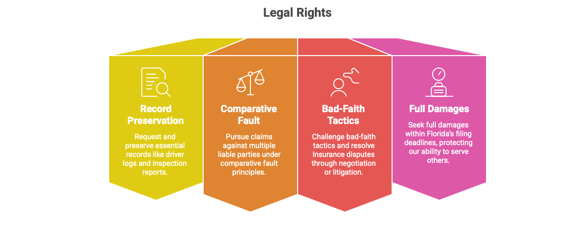 Although a truck rollover can leave victims overwhelmed and uncertain, Florida law gives us clear legal rights to pursue accountability and financial recovery.
